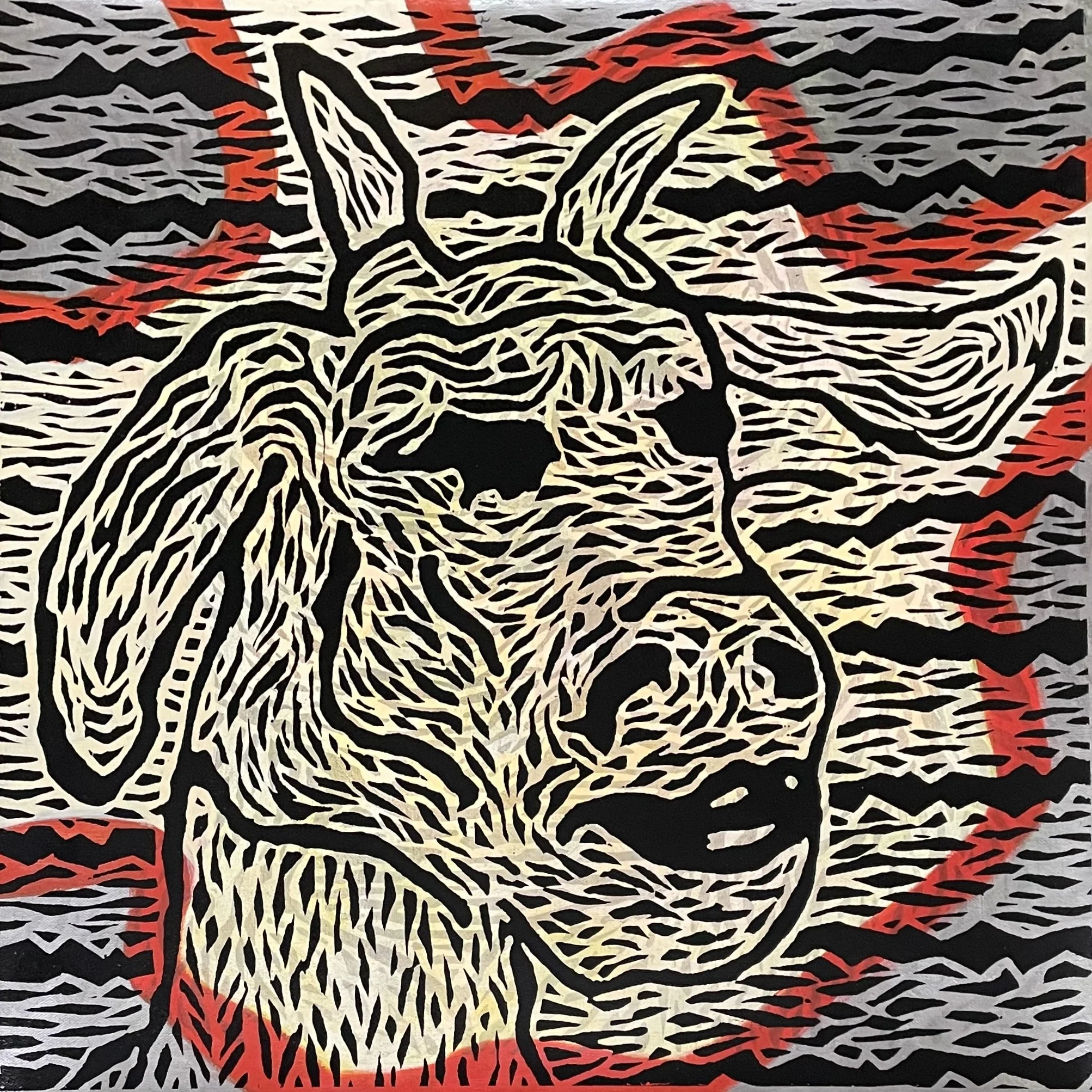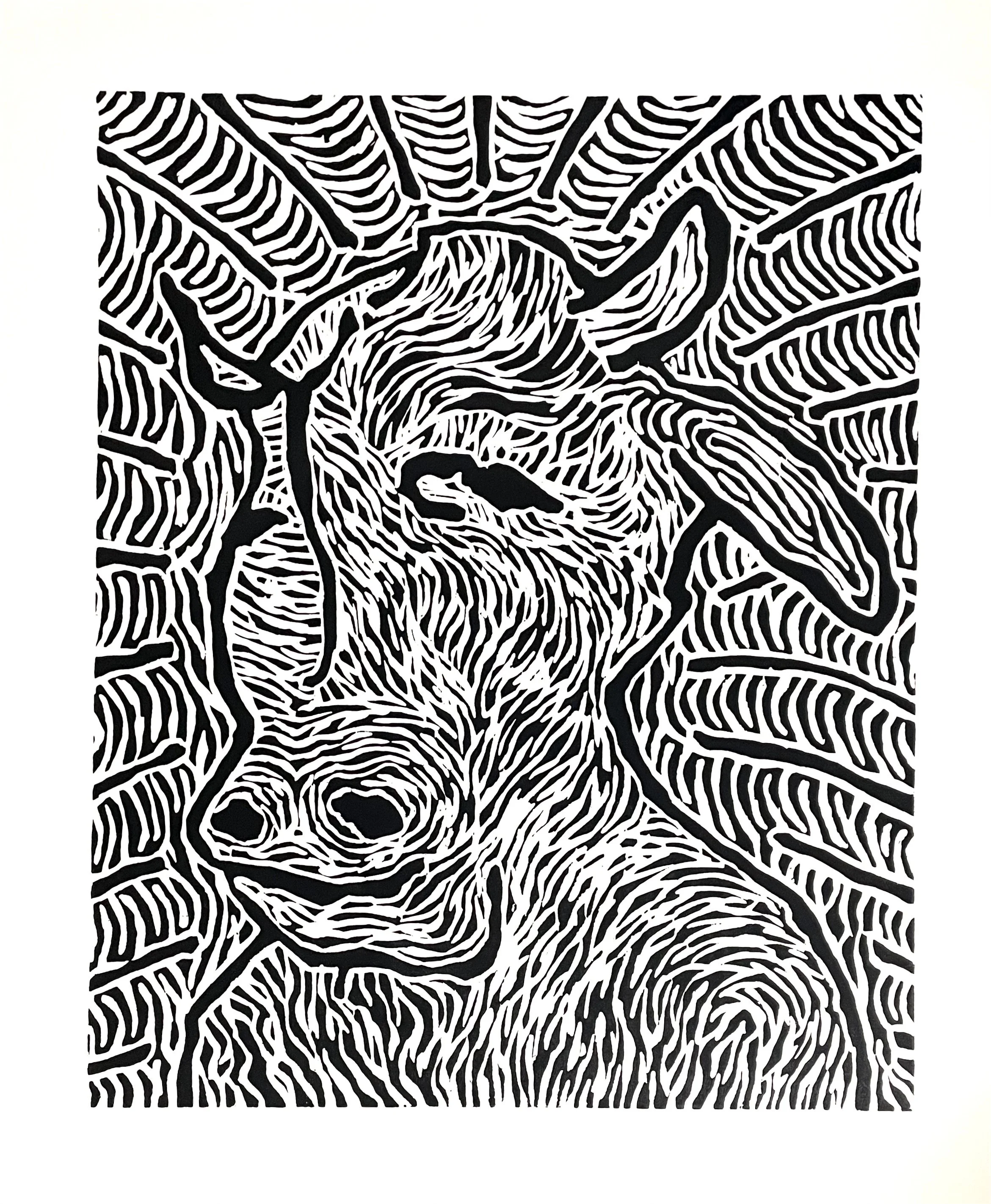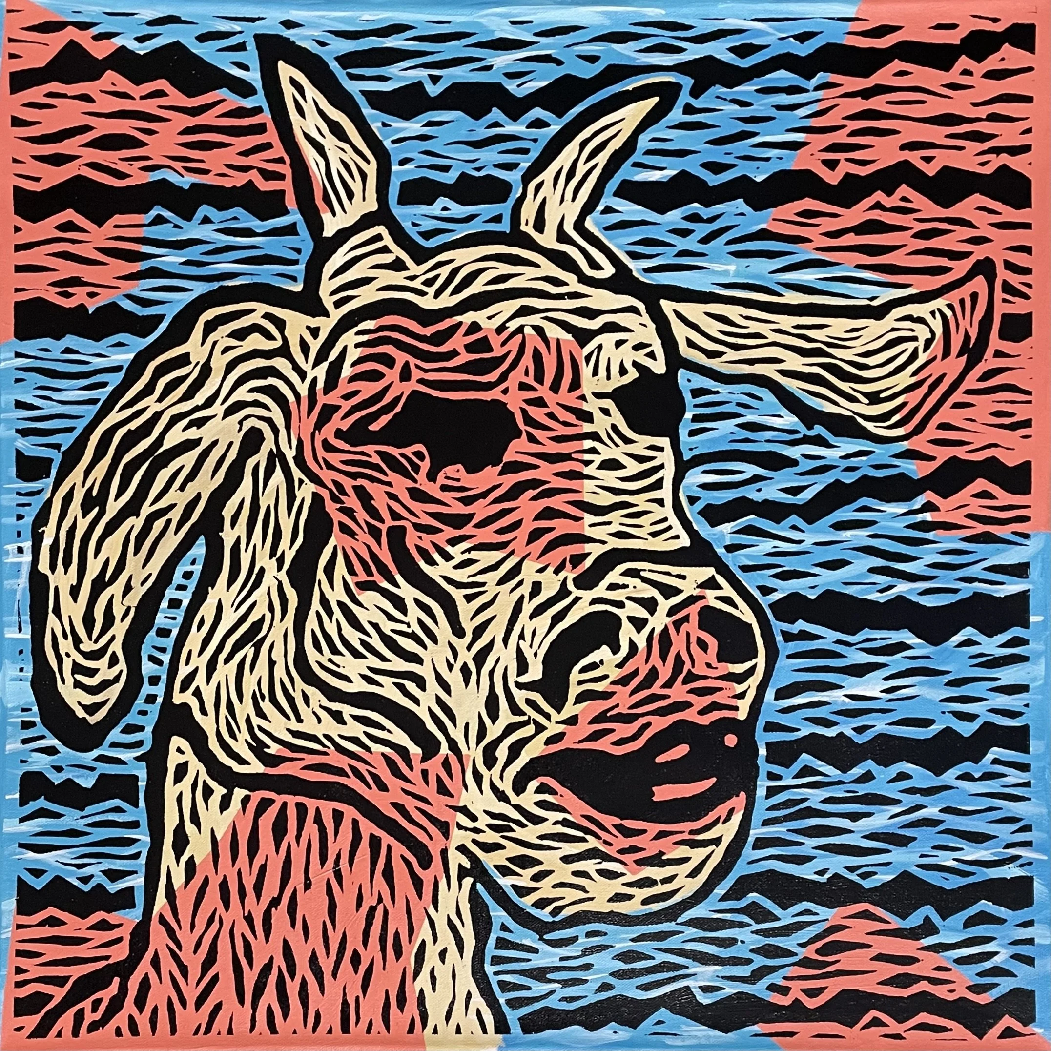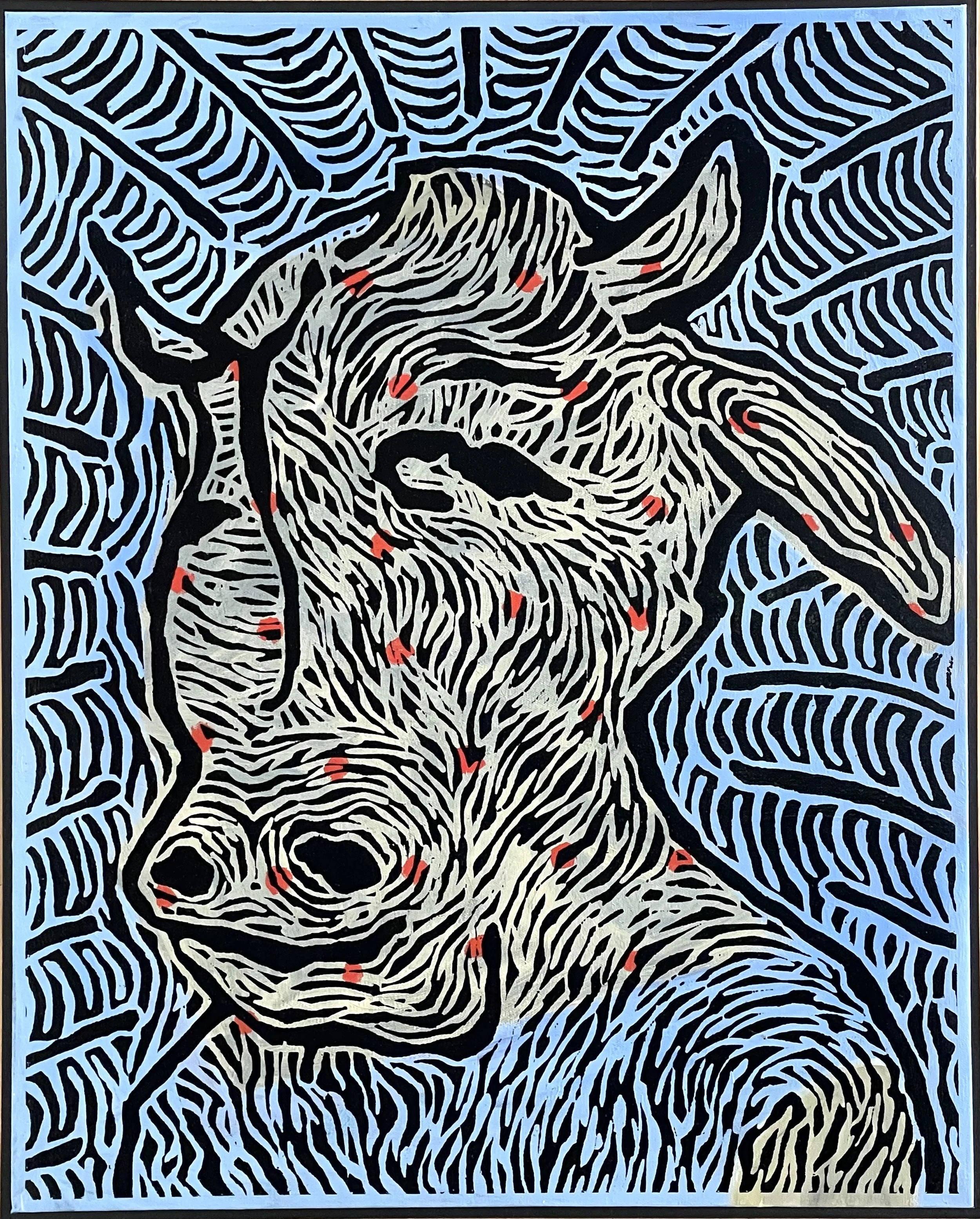 Toro Picaro Series: 30 x 24in woodblock on painted canvas