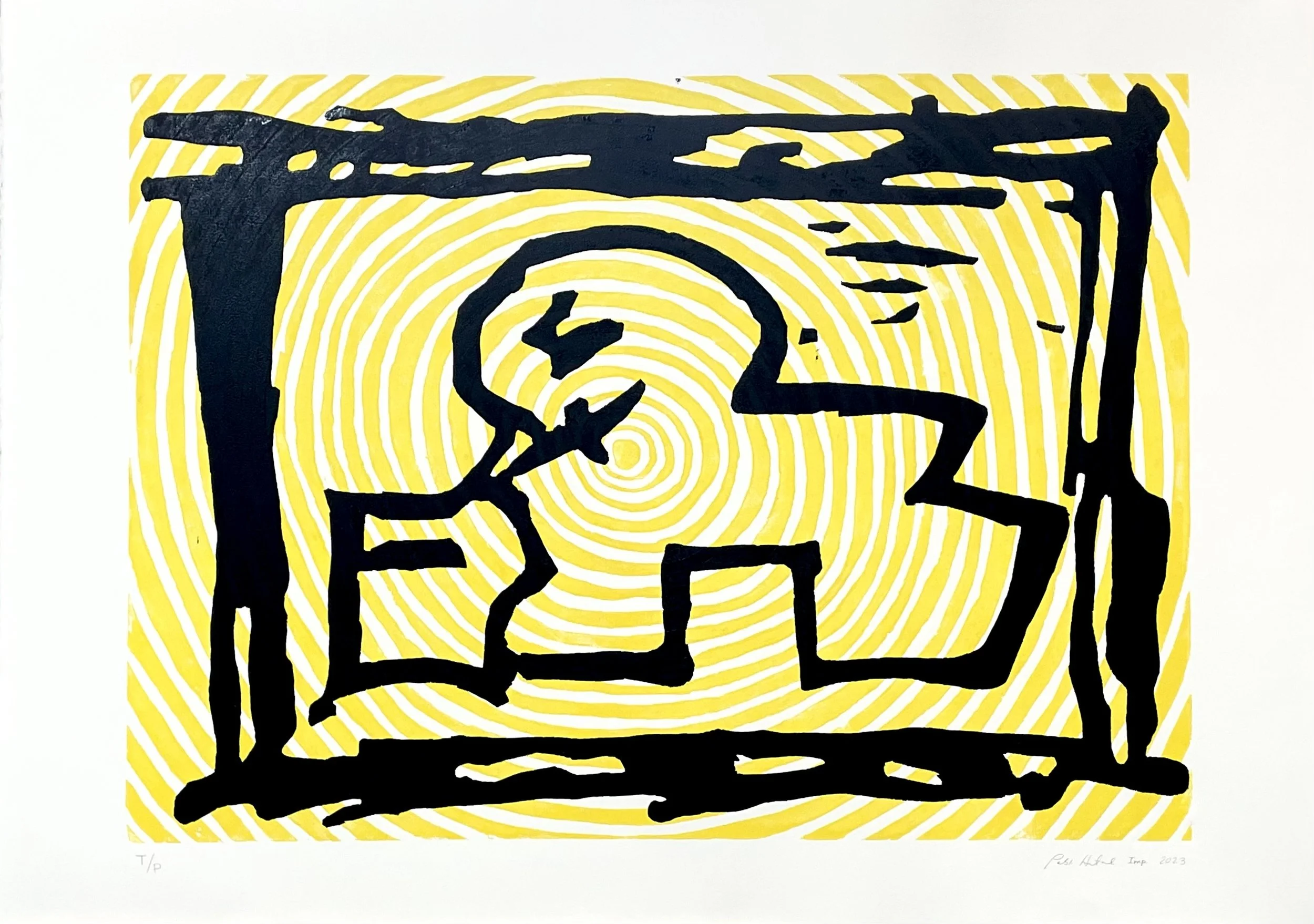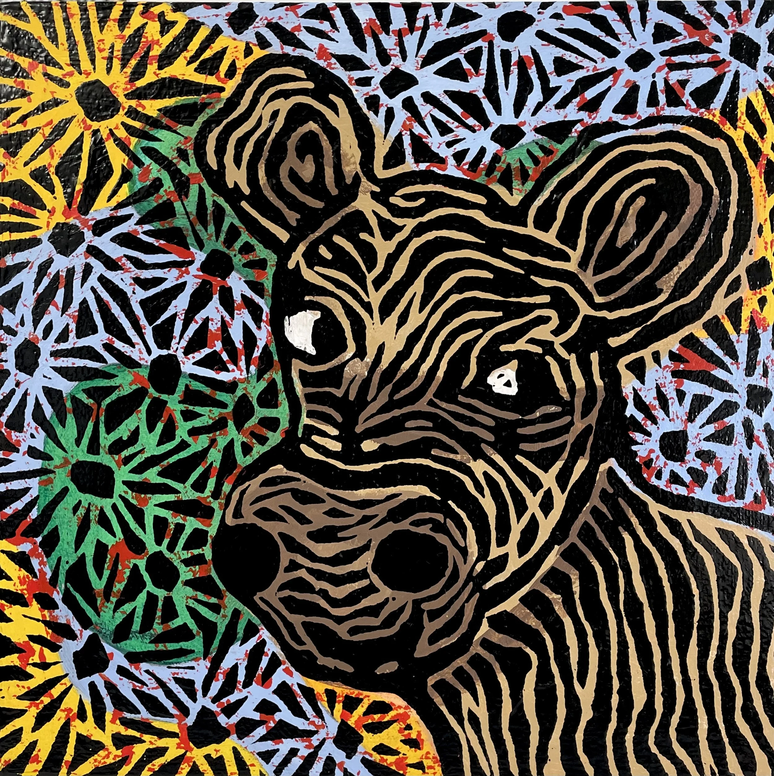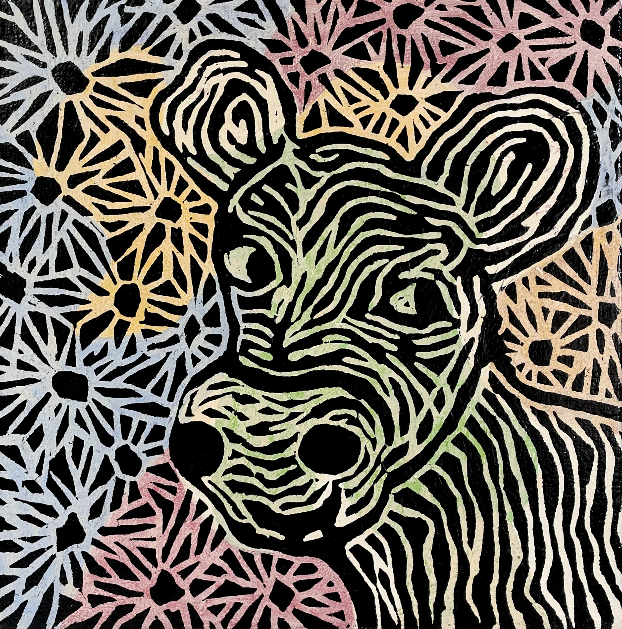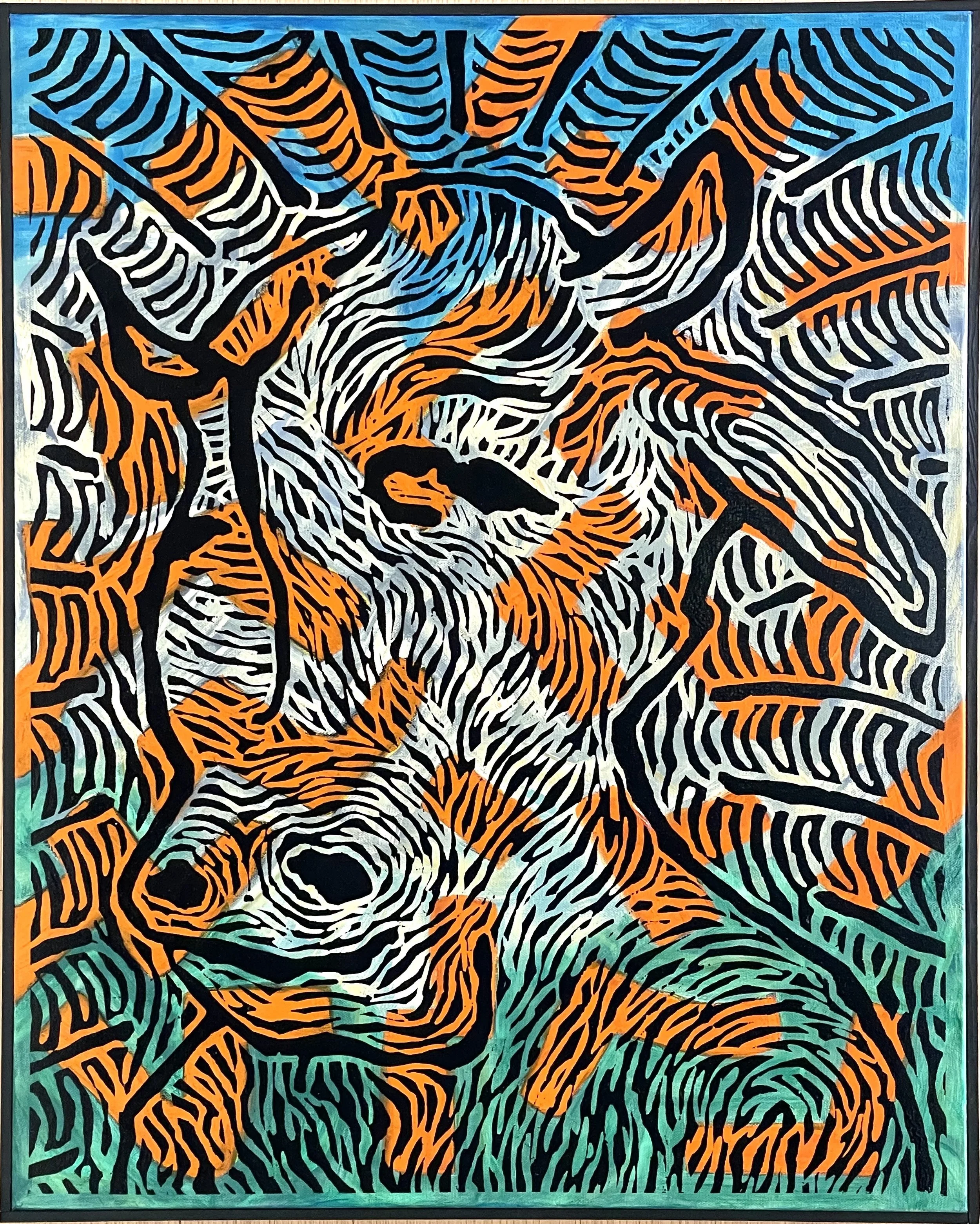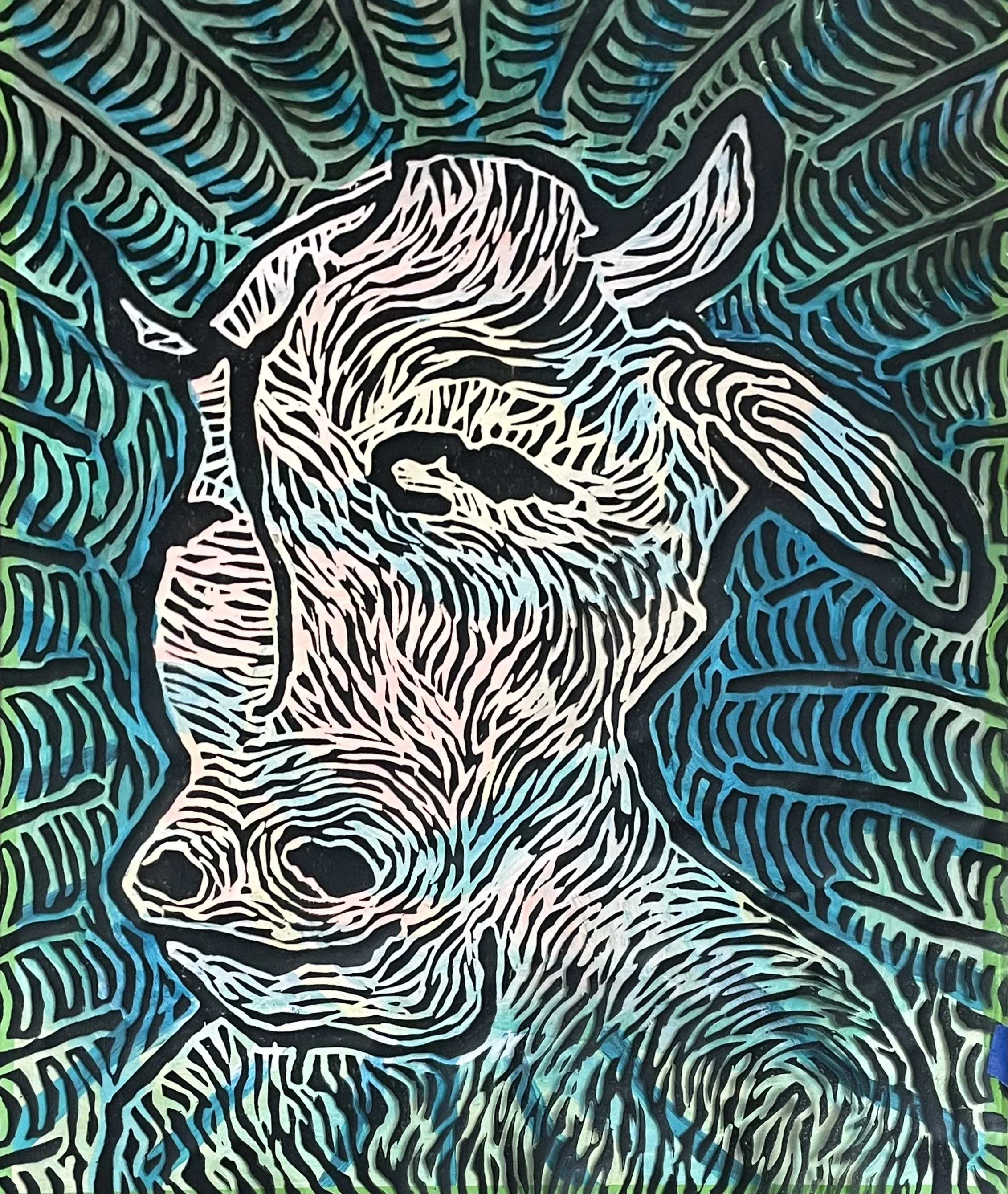 Toro Picaro Series: 30 x 24in woodblock on painted canvas