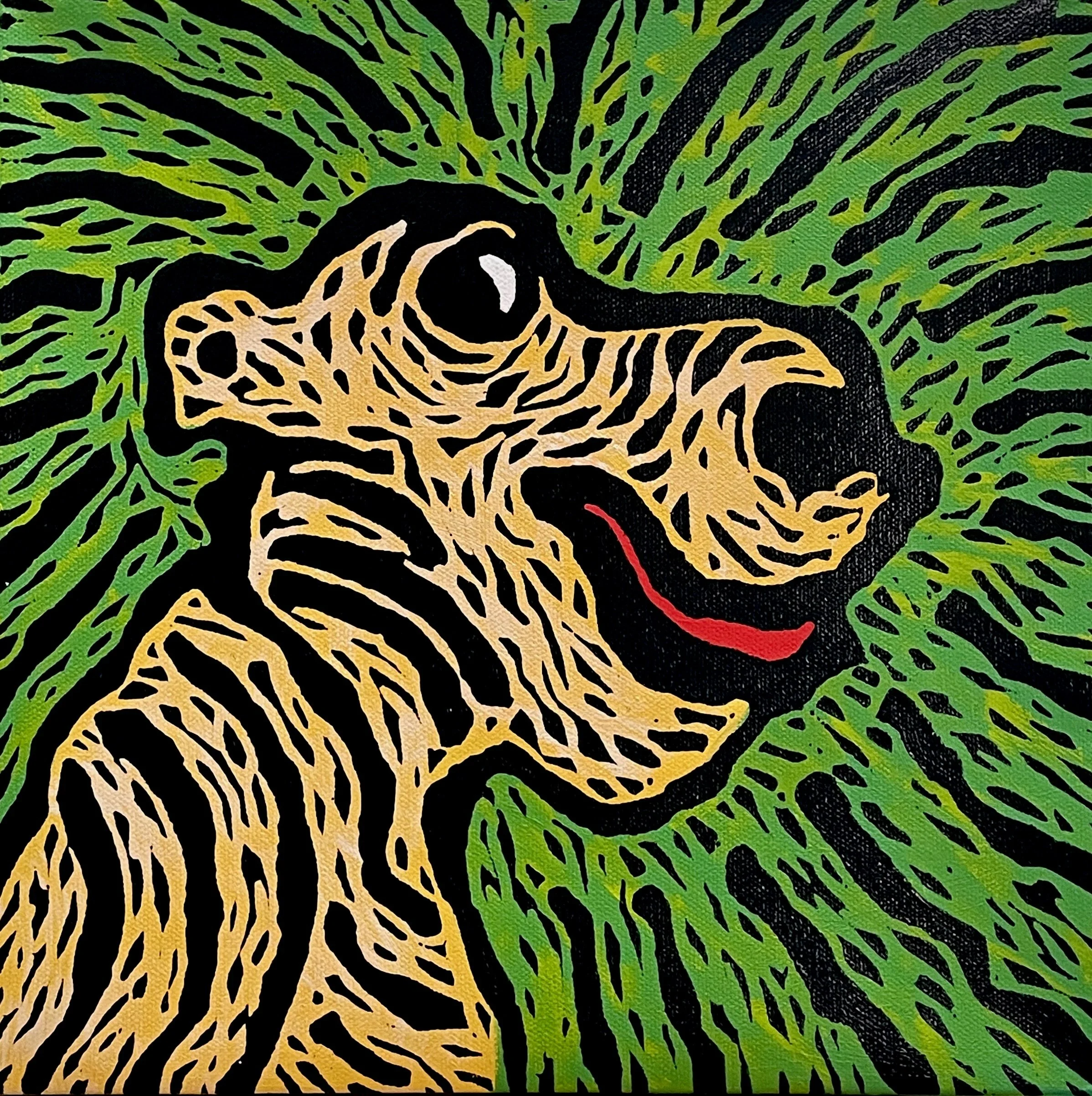 Meme Series: 30cm x 30cm woodblock on painted canvas