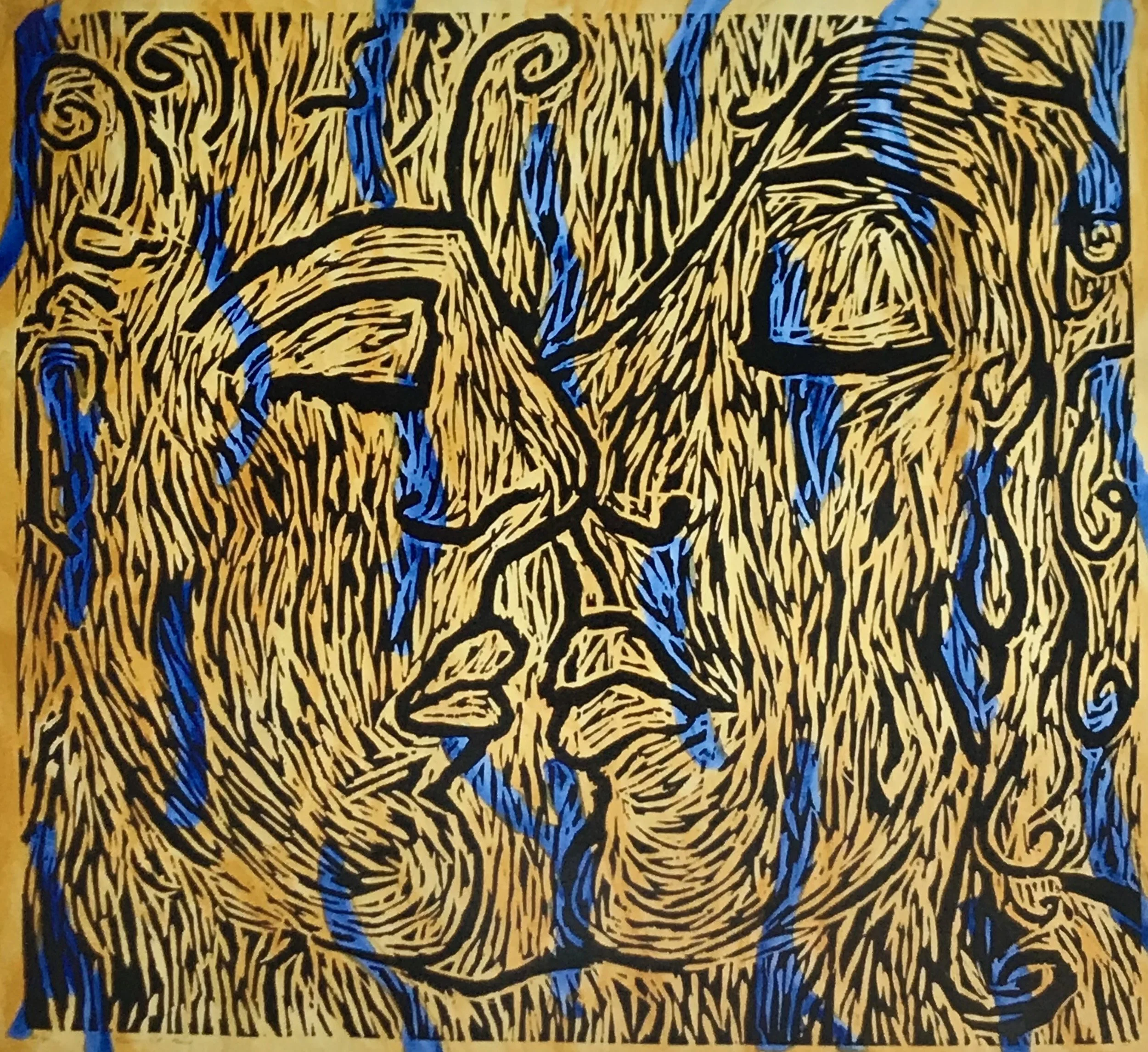 Ignacio Series: 71cm x 60cm woodblock on painted canvas